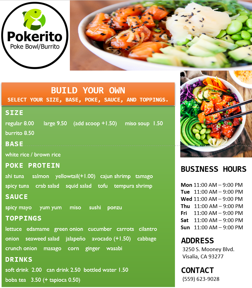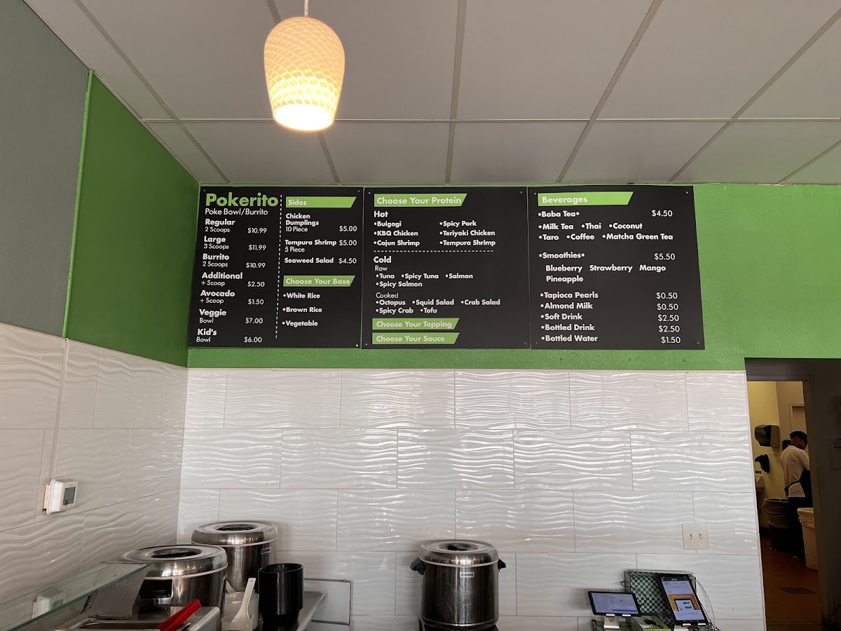 - Poke Bowls: Available in multiple sizes, including a Regular 2 Scoop Poke Bowl, a Large 3 Scoop Poke Bowl, and a Veggie Poke Bowl. These bowls combine a variety of fresh ingredients typical of poke cuisine.